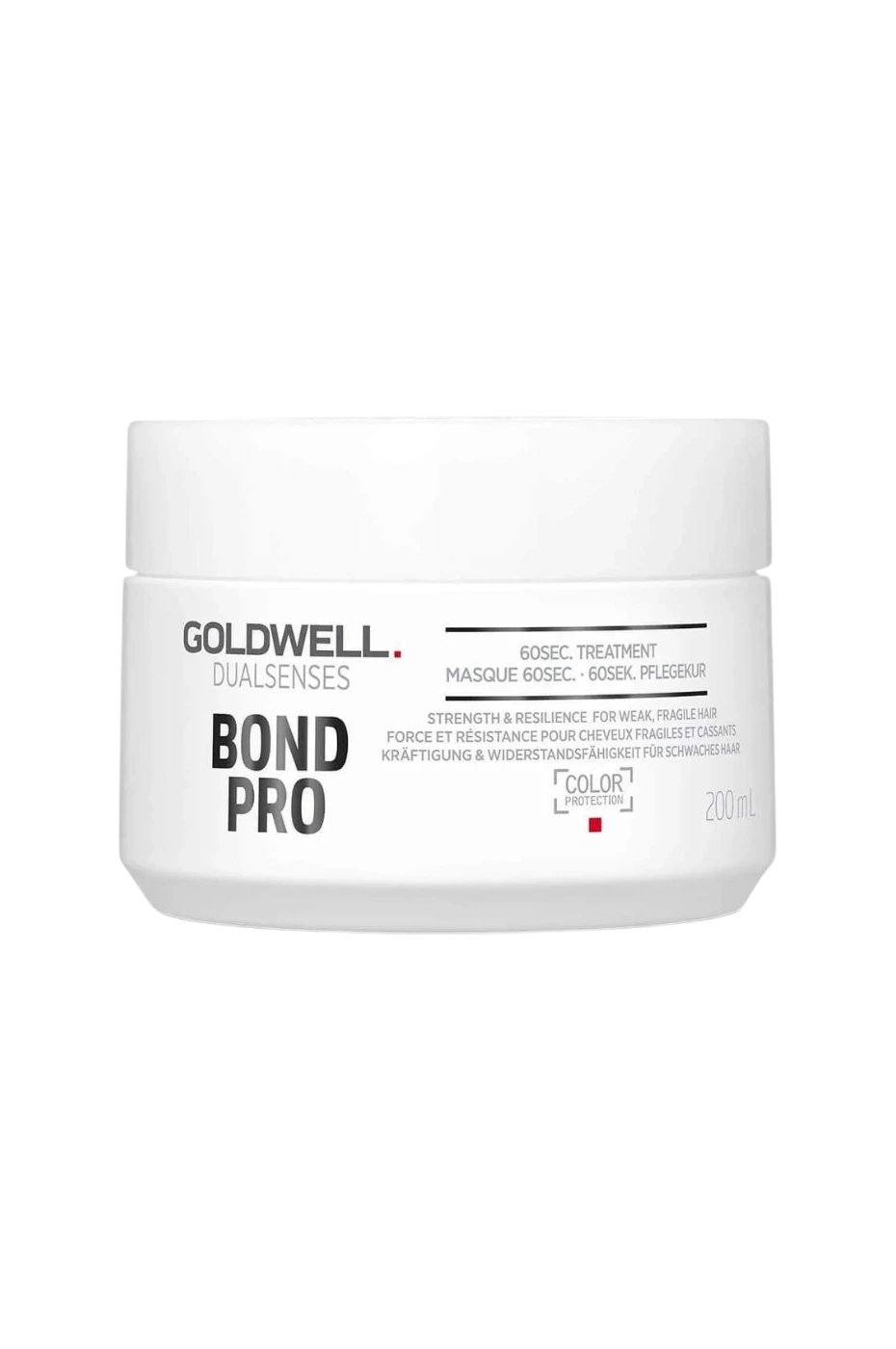 Goldwell Dualsenses Bond Pro 60s Tretman (Maska) specijalno je formulisan za slabu i lomljivu kosu. Jača vlakna kose do 100% za 60 sekundi i sprečava lomljenje kose i ispucale vrhove bez utezanja. Pruža gipkost, upravljivost i zaštitu. Uz microPROtec kompleks i Inter Amino Bond Builder, Bond Pro Technology je jedinstveni tretman koji pomaže u sprečavanju lomljenja i ispucanih vrhova bez otežavanja kose. Bond Pro tehnologija sadrži peptide i aminokiseline koje ciljaju oštećena područja unutar kose. Jedinjenja iz ekstrakata crvenih i smeđih algi formiraju jone i vodonične veze i ugrađuju ove peptide u unutrašnji korteks, čineći vlakno kose jačim i otpornijim.