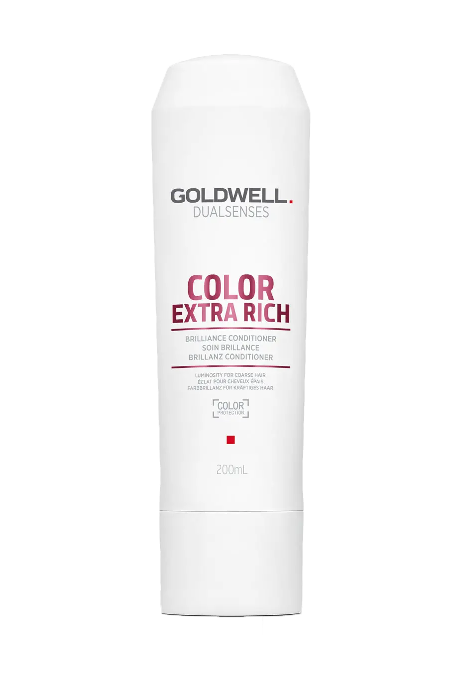 Goldwell Dualsenses Color Brilliance Extra Rich Conditioner formulisan je da pruža sjaj boje farbanoj i nefarbanoj kosi. Specijalno je formulisan za negu debele dlake. Održava slaonsku boju živopisnom, a nefarbanoj kosi daje sjaj i brilijantan izgled. Njegova jedinstvena formula održava boju kose dugotrajnom i umanjuje njeno ispiranje svakom sledećom upotrebom. Namenjen za kućnu i salonsku upotrebu.