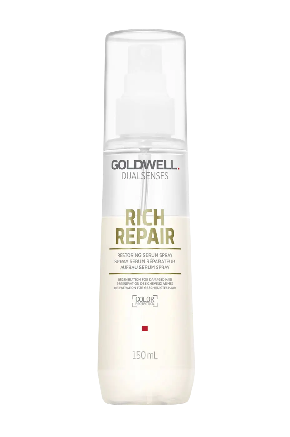 Goldwell Dualsenses Rich Repair Restoring serum u spreju osmišljen je kao brza i učinkovita njega za suhu i oštećenu kosu. Dubinski njeguje vlasi, obnavlja oštećenu kutikulu te znatno olakšava raščešljavanje. Nakon nanošenja kosa izgleda zdravije, elastičnija je i vidljivo sjajnija.