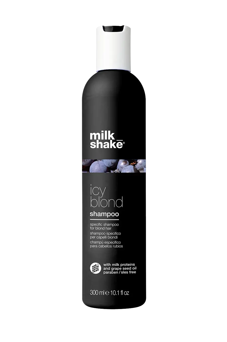 Milk Shake ICY Blond šampon poseban je šampon namijenjen plavoj kosi. Nježno čisti kosu uz pomoć specifičnog crnog pigmenta koji neutralizira žute i narančaste tonove na plavoj ili posvijetljenoj kosi, dajući hladnije, pepeljaste nijanse.