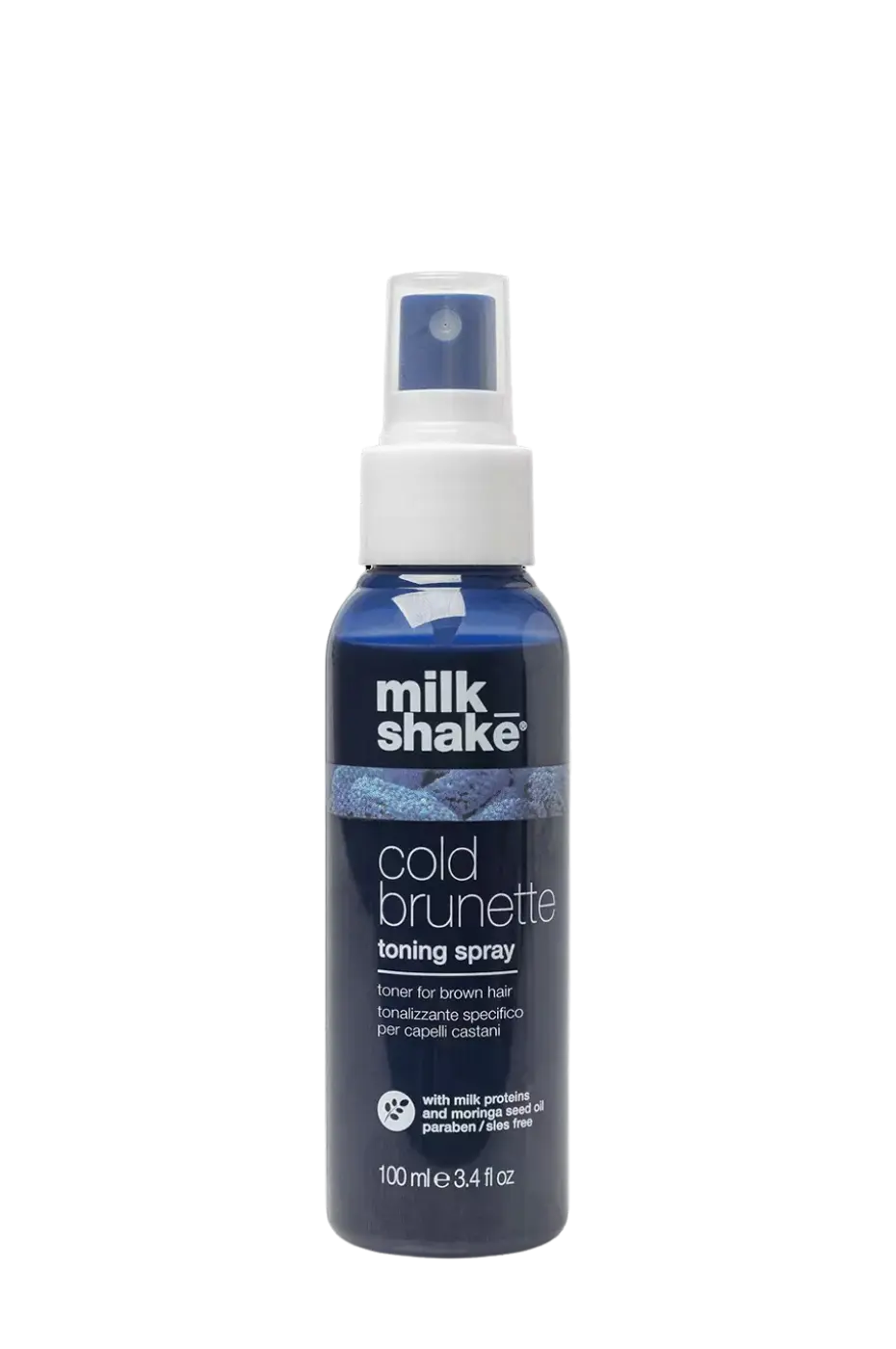 Milk Shake Cold Brunette Toning Spray je poseban tonik za smeđu kosu s plavim pigmentima koji neutraliziraju tople, crvenkaste i narančaste tonove. Rezultat je hladnija, sjajnija nijansa koja izgleda prirodno i svježe.