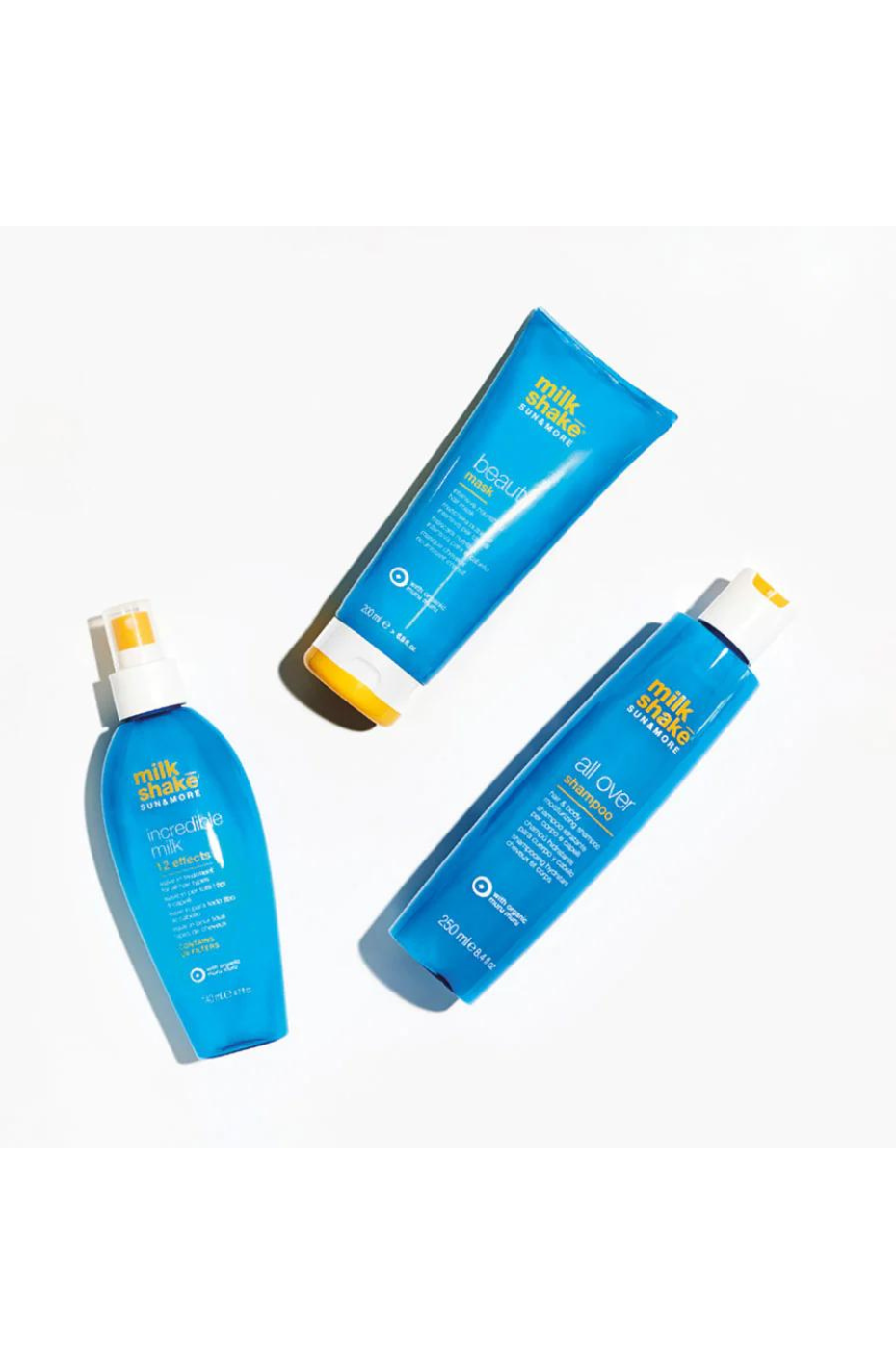 Milk Shake Sun & More Incredible Milk obnavlja kosu oštećenu suncem, morskom soli i vjetrom, dok istovremeno pruža dubinsku hidrataciju i zaštitu. Idealan je za sve tipove kose i savršeno nadopunjuje tvoju ljetnu beauty rutinu.
